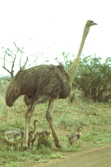12- أرجل طائر النعام قوية جدًّا، ويبلغ طول العضلة حوالي 60 سم بدءًا من الكعب حتى أعلى الساق، وهذه العضلة هي التي تعطي الطائر السرعة والقوة ، و السيقان الطويلة تساعد على الجرى بخطوات واسعة قد تصل الى 8 أمتار بسرعة حوالي 60 كيلو متر / ساعة ويمكن أن يستمر علي هذه السرعة بصورة منتظمة لمدة ربع ساعة قبل أن تقل سرعته بعدها .
