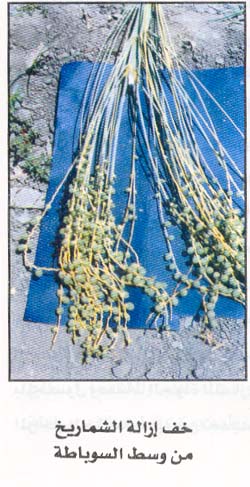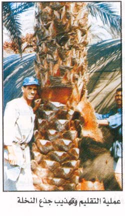 2- الاهتمام بعمليات الخدمة من رى وتسميد وعزيق وتقليم السعف وإزالة بقايا العراجين القديمة .