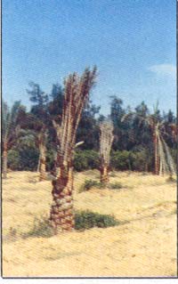 يلائم المناخ الصحراوى الجاف أشجار النخيل وهى الشجرة التى كُرمت فى الكتب السماوية والأحاديث النبوية فهى شجرة مباركة وقد عمل الإنسان على زراعتها منذ أقدم العصور وهى الغذاء الأساسى لقاطنى الصحراء ( غذاء البدو فى الصحراء هو التمر واللبن ) وهى فاكهة الغنى وغذاء الفقير لذا يجب علينا الاهتمام بخدمتها والمحافظة عليها وإجراء العديد من البحوث والدراسات لتعيش المستقبل كما عاشت الماضى وهى شديدة الشبه بالإنسان فهى ذات جذع منتصب وإذا قطع رأسها ماتت وإذا تعرض قلبها لصدمة قوية هلكت ( الجمارة ) ، أيضاً منها الذكر والأنثى .