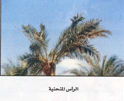 3- ظهور الإصابة فى منطقة الجمارة ينتج عنها موت القمة النامية وانحنائها لأحد الجوانب مع سهولة نزع سعف القلب .