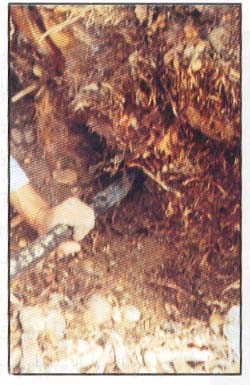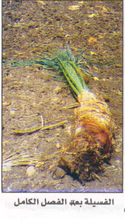 ٥ - موت الفسائل سواء كانت هوائية أو أرضية مع سهولة نزع قلوبها ويمكن ملاحظة الأطوار المختلفة .