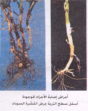 أعراض إصابة الأجزاء الموجودة أسفل سطح التربة بمرض