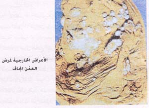 وهو من أهم الأمراض التى تصيب المحصول فى الحقل وتنتقل إلى المخزن أيضاً وتتمثل الأعراض كلأتى :