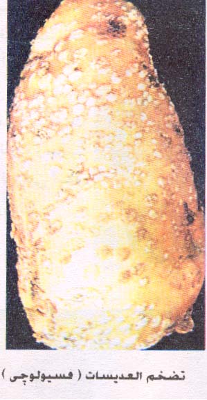 تنتفخ العديسات وتظهر كثأليل بيضاء اللون عند زيادة الرطوبة الإرضية بدرجة كبيرة مما يؤدى إلى سوء التهوية وبالتالى تبدأ الدرنات تؤقلم نفسها فتتسع العديسات لتسمح بتبادل الغازات وتحدث هذه الظاهرة عند حصاد الدرنات غير كاملة النضج تحت ظروف من الرطوبة المرتفعة .