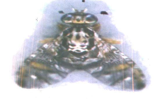 - ذبابة أكبر قليلاً من الذبابة المنزلية لونها بني مائل للاحمرار ذات رأس كبير وعيون مركبة جاحظة (شكل 6) .