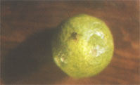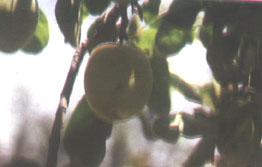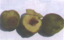 الشكل رقم ( 11 )مظهر الاصابة في ثمار الخوخ ويبدو الافراز الصمغي واضحا