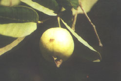 الشكل رقم ( 16 ) انثي ذبابة ثمار الخوخ تضع البيض في ثمرة الجوافة