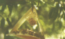 - العذراء لونها بني لامع ، برملية الشكل ، طولها يتراوح مابين 3-4 مم تتواجد داخل التربة علي عمق 1-6سم وهي الطور الكامن حيث أنها لا تتحرك ونري أنها شديدة الشبه بعذارى ذبابة فاكهة البحر المتوسط (شكل 9) .