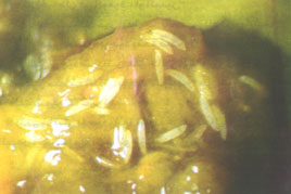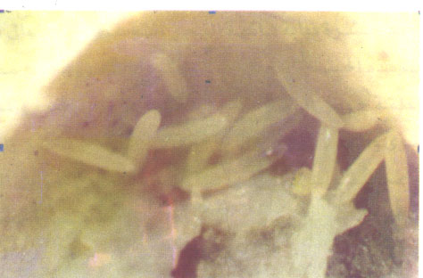 الشكل رقم ( 3 )الطور اليرقي داخل احدي الثمار المصابة